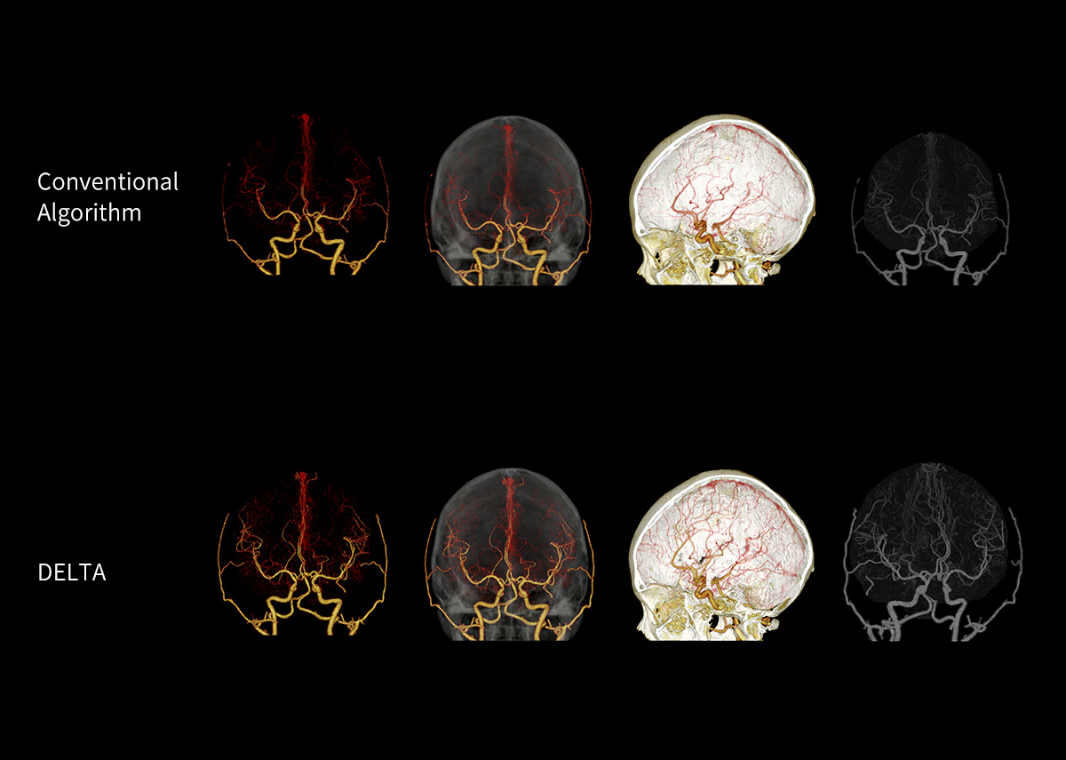Prin combinarea tehnicilor de perfuzie dinamică cu algoritmul de reconstrucție bazat pe deep learning DELTA, pot fi obținute imagini CTA 4D detaliate atât ale arterelor, cât și ale venelor cerebrale, chiar și la o doză redusă de radiație.