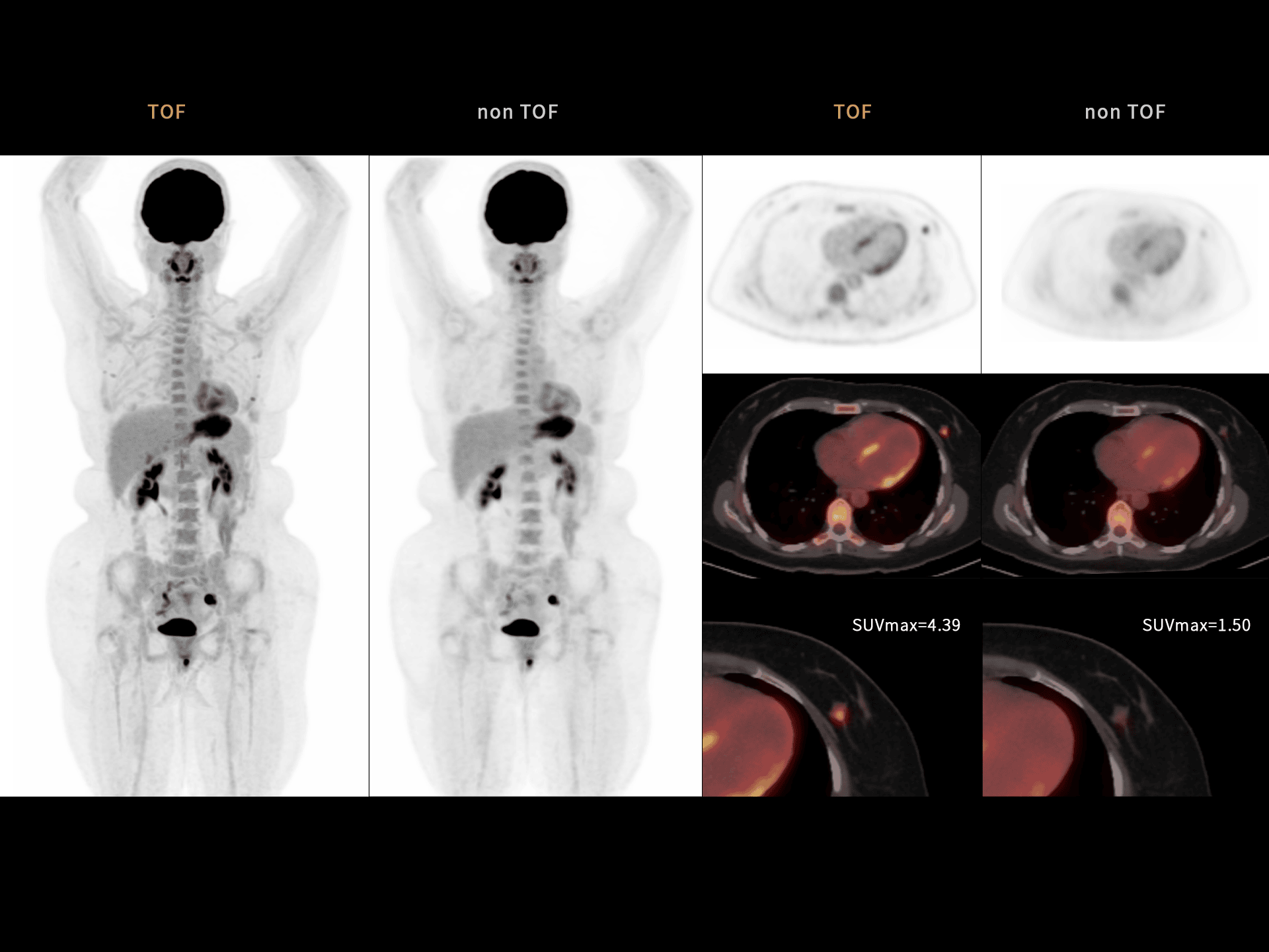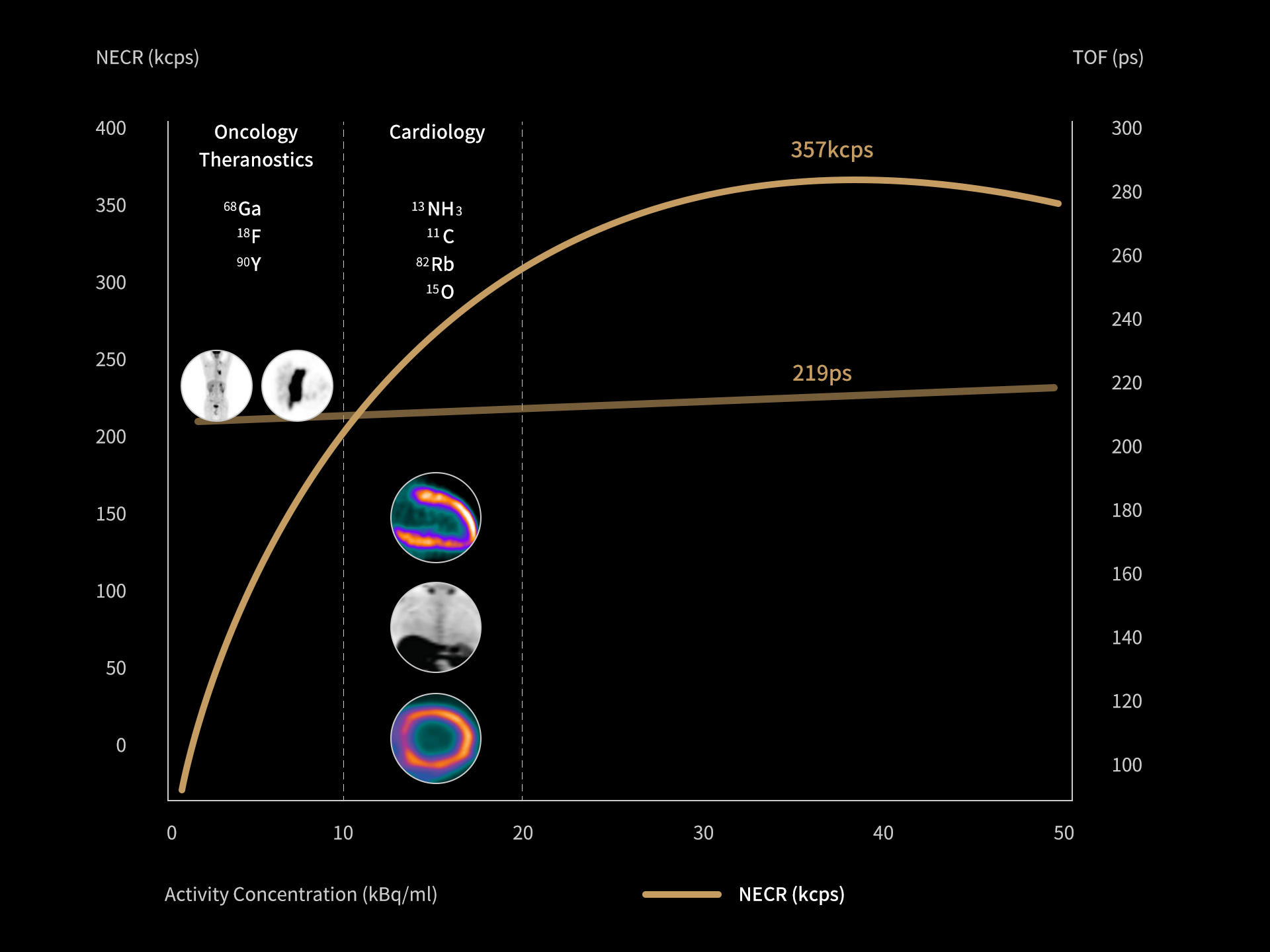 Rezoluția TOF avansată de 219 ps îmbunătățește vizibilitatea leziunilor mici și acuratețea cantitativă.
